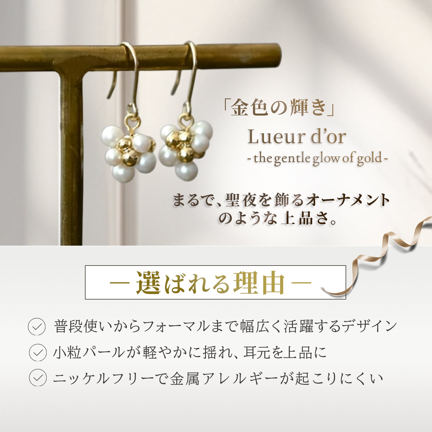 パール×ゴールドのコンビネーションで