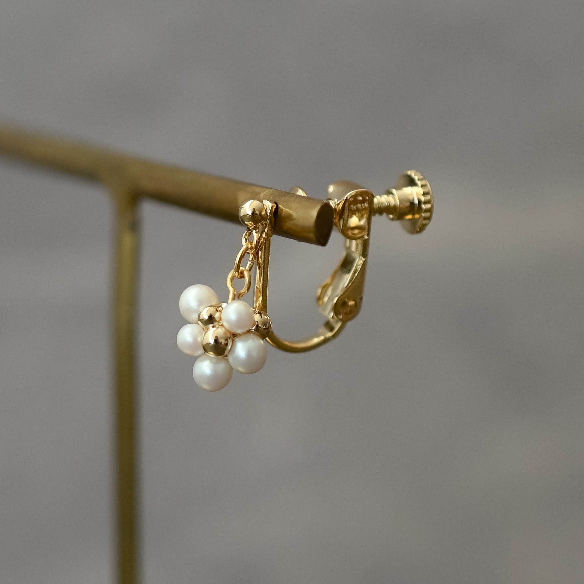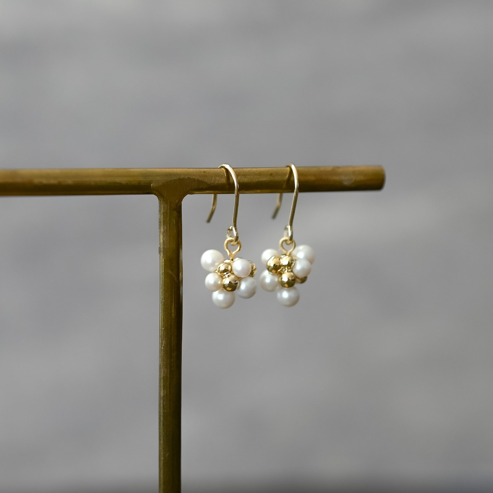 小ぶりのパールボールが耳元で上品に揺れ動きます。